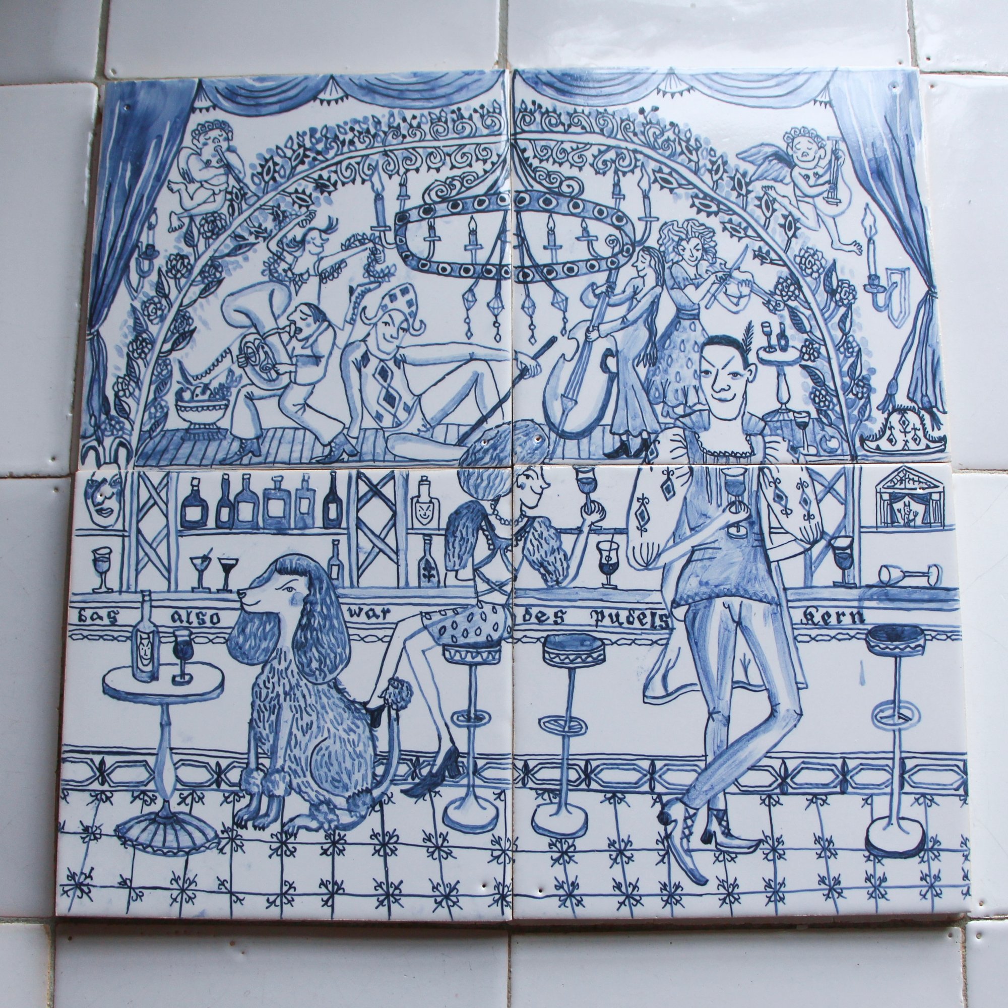 Faience painting on four tiles sized 13 x 13 cm