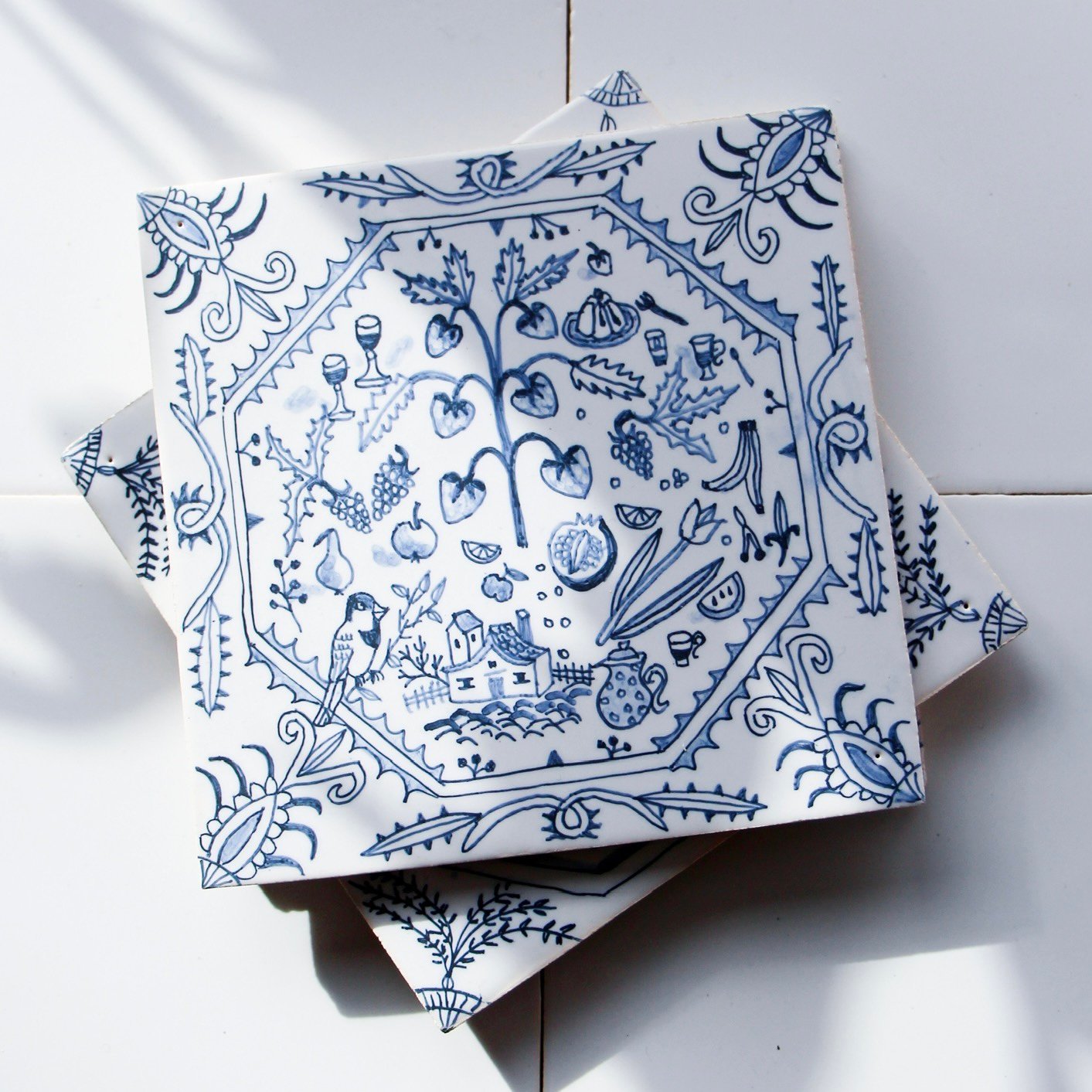 Unique handmade, hand-painted Faience tile